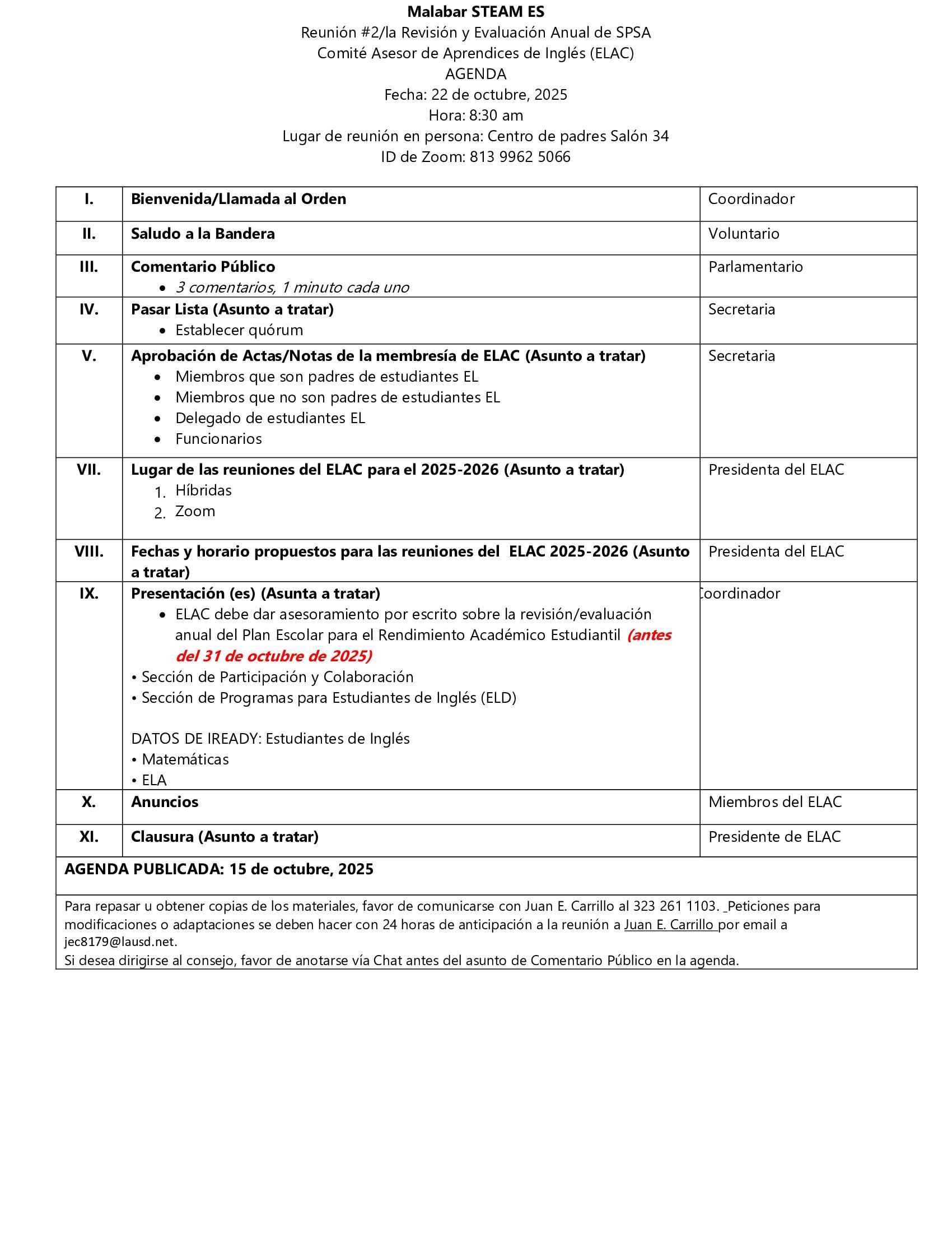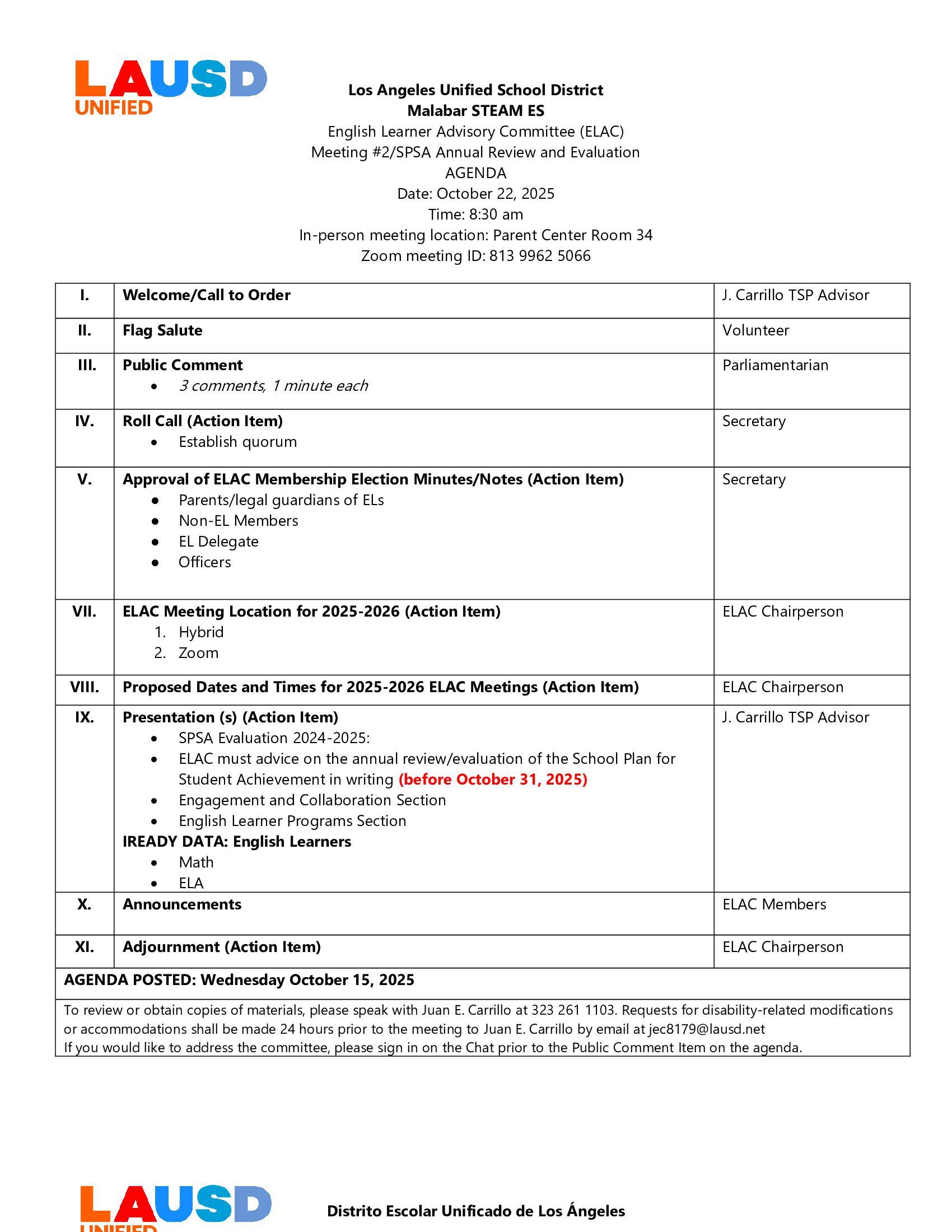 ELAC Meeting #2/SPSA Annual Review and Evaluation