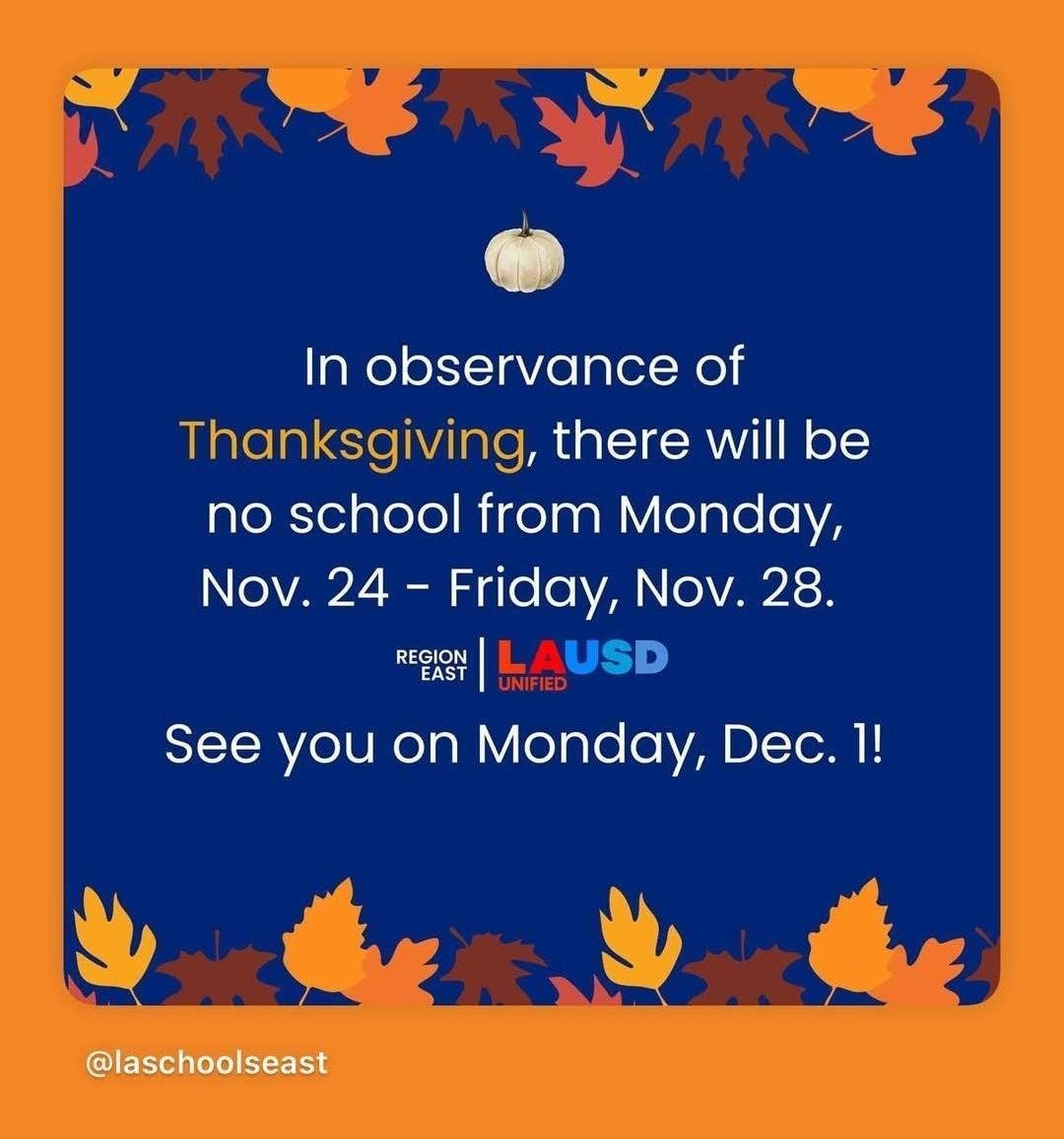 Have a safe Thanksgiving Break! See you Dec 1, 2025!